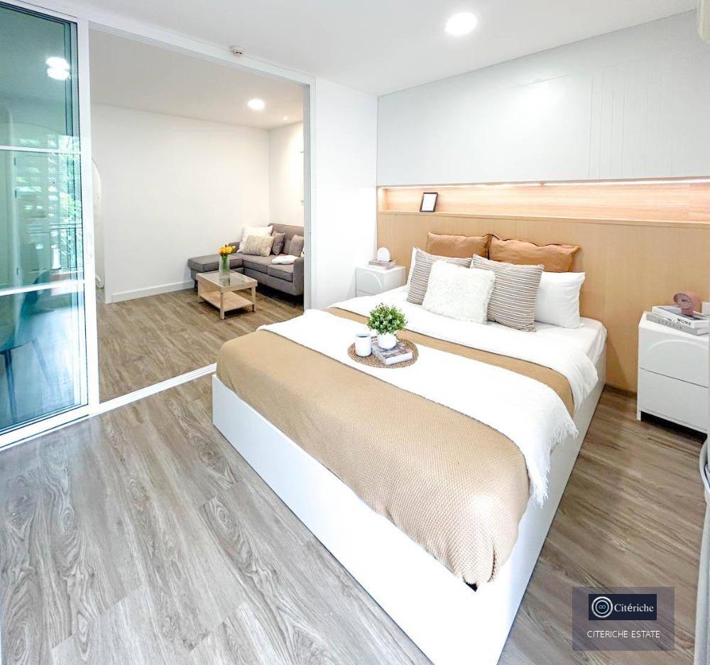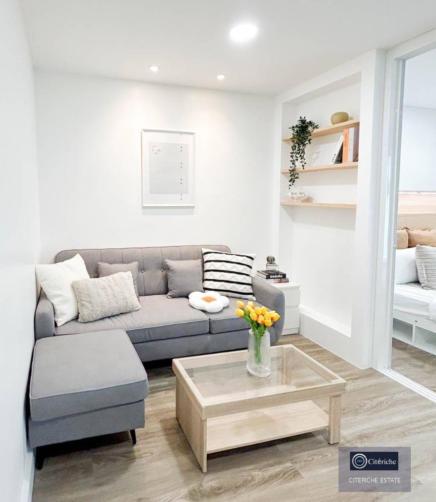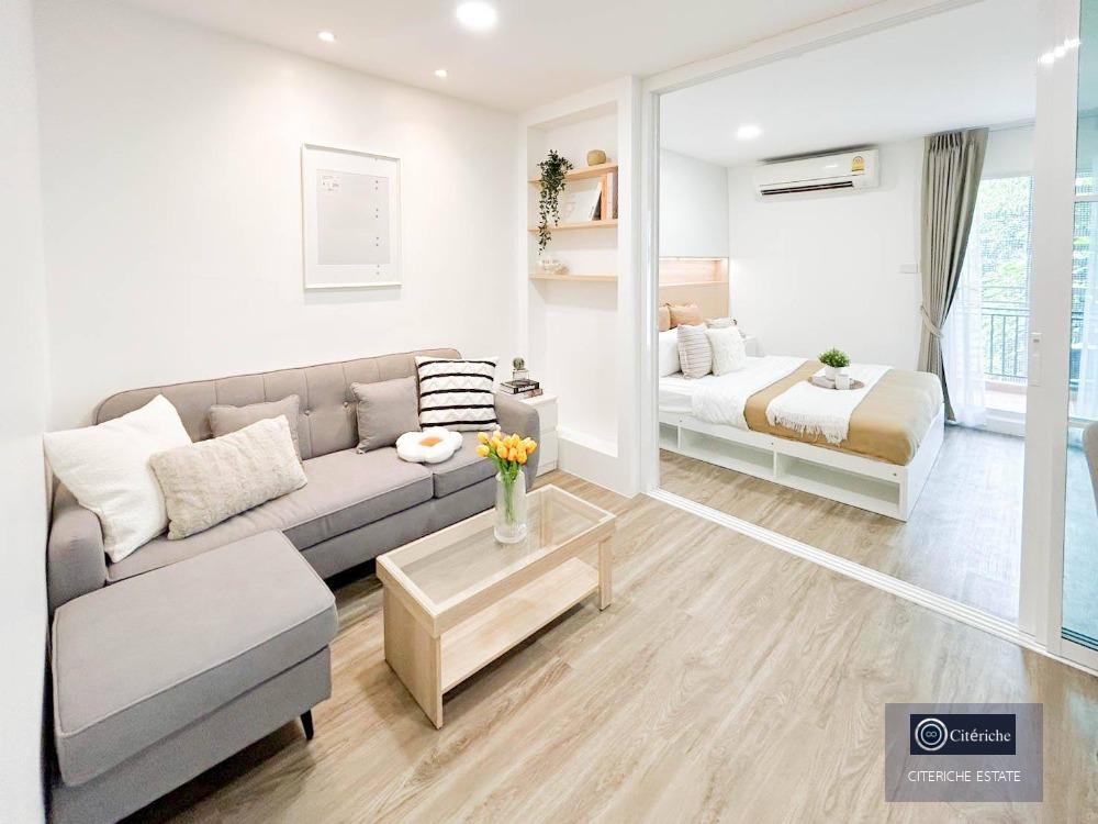 - ลักษณะห้อง: 1 ห้องนั่งเล่น, 1 ครัวแยก พร้อมตู้ built-in